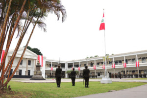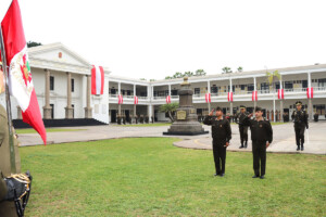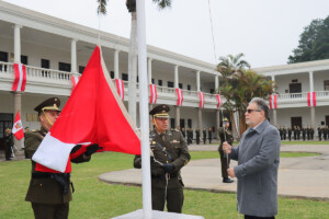 En el día de hoy, la Escuela Superior de Guerra del Ejército llevó a cabo un emotivo izamiento del Pabellón Nacional en honor a la visita del Dr. Alberto Martín Casas Lucich, Rector de la Universidad Privada San Juan Bautista. Este evento, que se realizó en un ambiente de respeto y solemnidad, reafirma los lazos de colaboración entre nuestras instituciones.