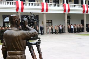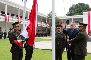 Esta mañana, se llevo acabo en el patio de honor de la ESGE -EPG una solemne ceremonia de izamiento del Pabellón Nacional en homenaje al CXLV aniversario del Arma de Ingeniería y en memoria del insigne patriota, el Teniente Coronel Pedro Ruiz Gallo, quien el 24 de abril de 1880 ofrendó heroicamente su vida mientras trabajaba incansablemente en la fabricación de torpedos para enfrentar a las fuerzas navales chilenas que bloqueaban el puerto del Callao.