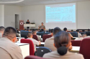 Los oficiales alumnos de la XIII Maestría en Ciencias Militares, como parte de sus actividades académicas, recibieron la conferencia sobre “El empleo de la Brigada Blindada en operaciones ofensivas” a cargo del Sr Tte Crl EP Marlon Liendo Ramos, reconocido docente en empleo de unidades blindadas.