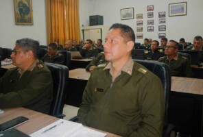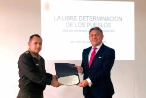 Los oficiales alumnos del Programa de Alto Mando del Ejército (PAME), como parte de sus actividades académicas, recibieron la conferencia sobre “La libre determinación de los pueblos” a cargo del Dr Carlos Jaico Carranza, reconocido abogado, analista y conferencista nacional e internacional.