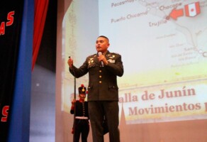 La Escuela Superior de Guerra del Ejército – EPG, en el marco de las celebraciones por el bicentenario de las batallas de Junín y Ayacucho, realizó la conferencia sobre estas gestas heroicas en el colegio emblemático Mercedes Cabello de Carbonera, donde la Tte Crl EP Mónica Casso Ramírez junto al My EP Carlos Rodríguez Wan revivieron actos heroicos y relatos de héroes que no dudaron en dar la vida en las áridas llanuras de Junín y en los imponentes cerros de Ayacucho, bajo un mismo propósito, el sueño de una patria libre y soberana, que aseguraron la consolidación de la independencia del Perú y sentaron las bases para la liberación de todo América del Sur.