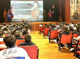 La Escuela Superior de Guerra del Ejército – EPG, en el marco de las celebraciones por el bicentenario de las batallas de Junín y Ayacucho, realizó la conferencia sobre estas gestas heroicas, en coordinación con la Escuela de Material de Guerra del Ejército, en el Centro Educativo Particular “La Salle” sede Lima, donde el Tte Crl EP Núñez Gonzáles Carlo, el MY EP Portero Cunyarache Ricardo y la MY EP Vanini Valdivia Claudia, revivieron los actos heroicos y relatos de héroes que no dudaron en dar la vida en las áridas llanuras de Junín y en los imponentes cerros de Ayacucho, bajo un mismo propósito, el sueño de una patria libre y soberana, que aseguraron la consolidación de la independencia del Perú y sentó las bases para la liberación de todo América del Sur.