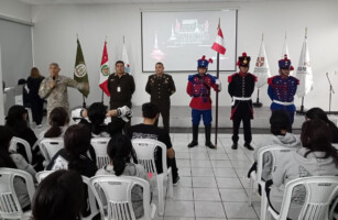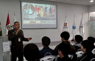 La Escuela Superior de Guerra del Ejército – EPG, en el marco de las celebraciones por el bicentenario de las batallas de Junín y Ayacucho, realizó la conferencia sobre estas gestas heroicas, en coordinación con la Escuela de Infantería del Ejército, en el Centro Educativo Particular “Pedro Ruiz Gallo” de Chorrillos, donde el MY EP Fernando Vásquez Orellana, revivió los actos heroicos y relatos de héroes que no dudaron en dar la vida en las áridas llanuras de Junín y en los imponentes cerros de Ayacucho, bajo un mismo propósito, el sueño de una patria libre y soberana, que aseguraron la consolidación de la independencia del Perú y sentó las bases para la liberación de todo América del Sur.