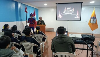 La Escuela Superior de Guerra del Ejército – EPG, en el marco de las celebraciones por el bicentenario de las batallas de Junín y Ayacucho, realizó la conferencia sobre estas gestas heroicas en coordinación con la Escuela de Operaciones Psicológicas del Ejército, en la Institución Educativa Particular “Belén” de Chorrillos, donde el Cap EP Jaime Taype Castillo, historiador militar y la Cap EP Polleth Verano Moya, revivieron actos heroicos y relatos de héroes que no dudaron en dar la vida en las áridas llanuras de Junín y en los imponentes cerros de Ayacucho, bajo un mismo propósito, el sueño de una patria libre y soberana, que aseguraron la consolidación de la independencia del Perú y sentó las bases para la liberación de todo América del Sur.