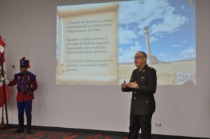 En este evento el Crl EP Ronald Terrones Avellaneda y el Cap EP Christian Rodríguez Aldana, reconocido historiador militar, en presencia de alumnos y distinguidos docentes, resaltaron la importancia histórica y estratégica de estas gestas, con relatos de héroes que no dudaron en dar la vida en las áridas llanuras de Junín y en los imponentes cerros de Ayacucho, bajo un mismo propósito, el sueño de una patria libre y soberana, que aseguraron la consolidación de la independencia del Perú y sentó las bases para la liberación de todo América del Sur.