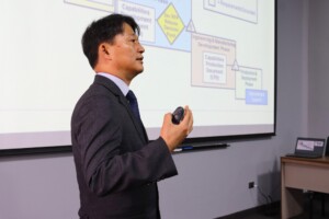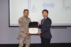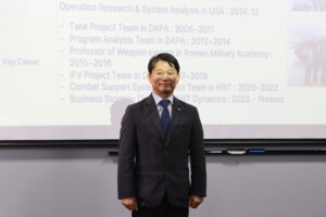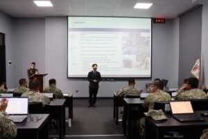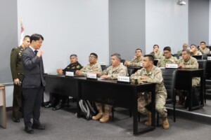 Los señores coroneles del Programa de Alto Mando del Ejército (PAME) participaron en la charla titulada “Historia de Compras Estratégicas en Corea”, brindada por el señor coronel del Ejército de la República de Corea del Sur, en situación militar de retiro, Youn Byung – Jo, Profesor de la Escuela Superior de Guerra de su país.