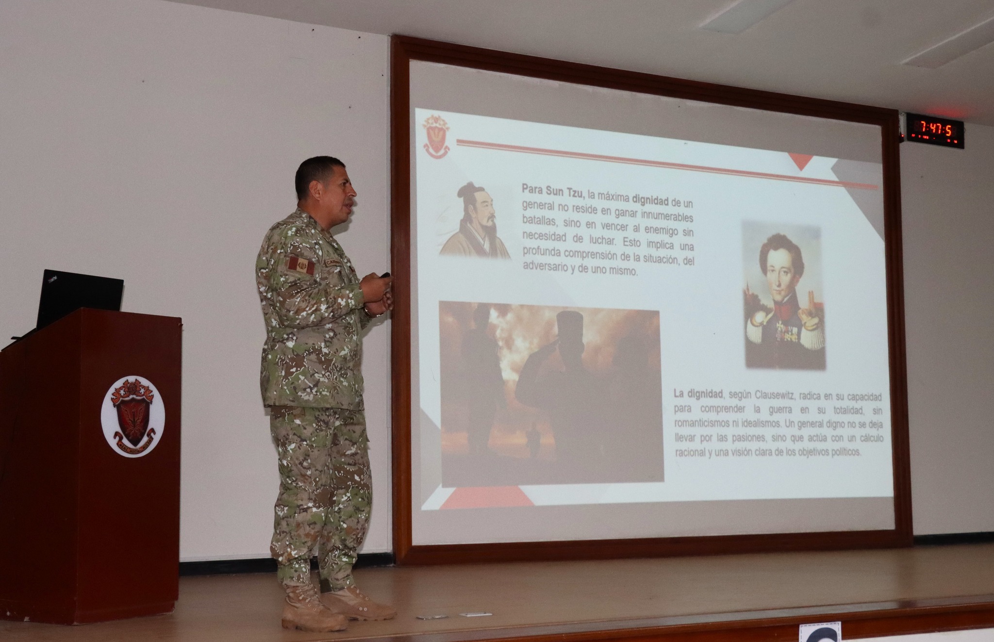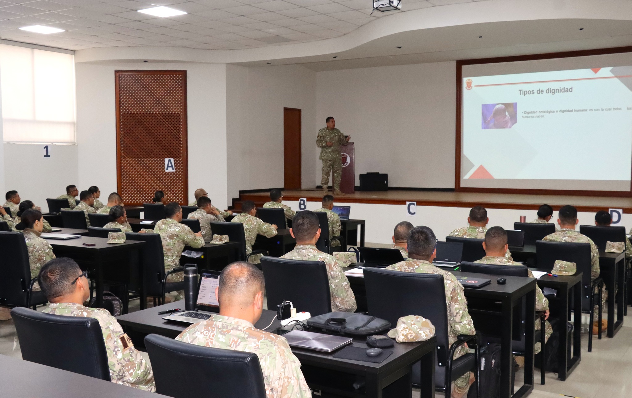 En el marco de la formación integral que brinda la Escuela Superior de Guerra del Ejército – Escuela de Posgrado, los oficiales estudiantes del Diplomado de Técnica de Estado Mayor Administrativo participaron en una charla sobre el valor de la dignidad.