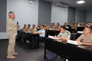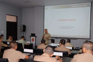 El General de División Julio Castañeda Zegarra, Comandante General del Comando de Operaciones Terrestres del Ejército, brindó una conferencia a los señores coroneles del Programa de Alto Mando del Ejército. Durante la actividad académica, compartió su vasta experiencia y conocimientos en temas estratégicos, operacionales y de liderazgo, abordando desafíos actuales y la proyección de las operaciones militares.