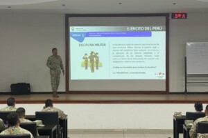 Los oficiales estudiantes del Diplomado de Técnica y Estado Mayor Administrativo recibieron una instrucción especializada por parte del asesor legal de esta casa de estudios, quien abordó los fundamentos y alcances del régimen disciplinario militar. Esta sesión académica permitió fortalecer la comprensión normativa de los alumnos, reafirmando su compromiso con la ética profesional y la disciplina institucional.