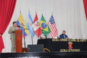 La Escuela Superior de Guerra del Ejército – EPG llevó a cabo la conferencia de gran relevancia y actualidad titulada “El Conflicto Rusia-Ucrania: Raíces Históricas, Transformación Geopolítica e Impacto en el Mundo Militar”, que fue impartida por el destacado Dr. Manuel Valega Mires.