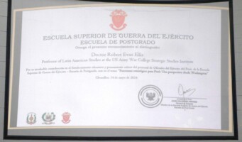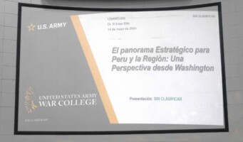 La Escuela Superior de Guerra del Ejército – EPG, realizó la Conferencia Magistral “El panorama estratégico para Perú y la región: una perspectiva desde Washington” en la modalidad virtual, teniendo como expositor el Dr. Robert Evan Ellis, distinguido conferencista internacional, y profesor de investigación de estudios de américa latina y el caribe (USAWC).