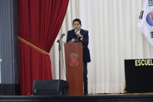 El día de hoy en el auditorio de la ESGE – EPG, los oficiales alumnos de los diferentes programas recibieron la conferencia «La gestión estratégica de los recursos hídricos y su impacto en el desarrollo nacional» en la que el conferencista, especialista en temas hídricos, destacó la importancia de una gestión eficiente y sostenible del agua como eje fundamental para el crecimiento económico, la seguridad alimentaria y el bienestar social del país.