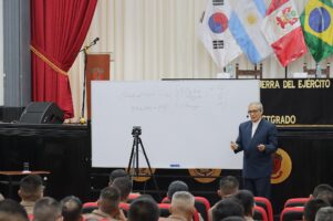 La Escuela Superior de Guerra del Ejército -EPG tuvo el agrado de presentar la conferencia titulada “La economía peruana en el 2025 y efectos de la política del Presidente de los Estados Unidos”, dirigida a los diferentes programas académicos de esta prestigiosa casa de estudios. En esta importante disertación se ofreció un análisis prospectivo sobre el panorama económico del Perú, considerando los impactos geoestratégicos y financieros derivados de las decisiones políticas de la administración estadounidense, brindando a los oficiales alumnos una visión integral para la comprensión del entorno internacional y su influencia en la seguridad y el desarrollo nacional.