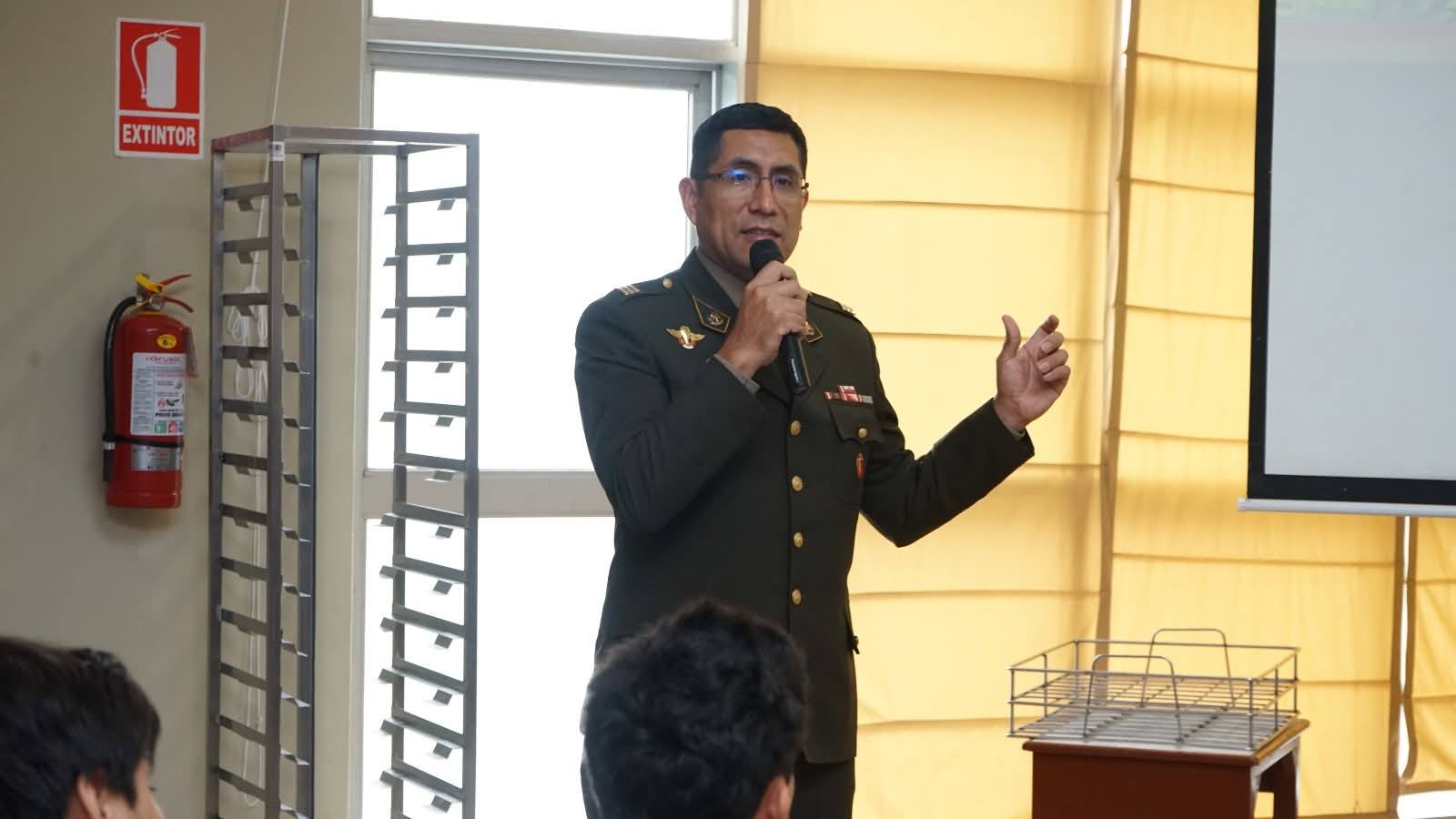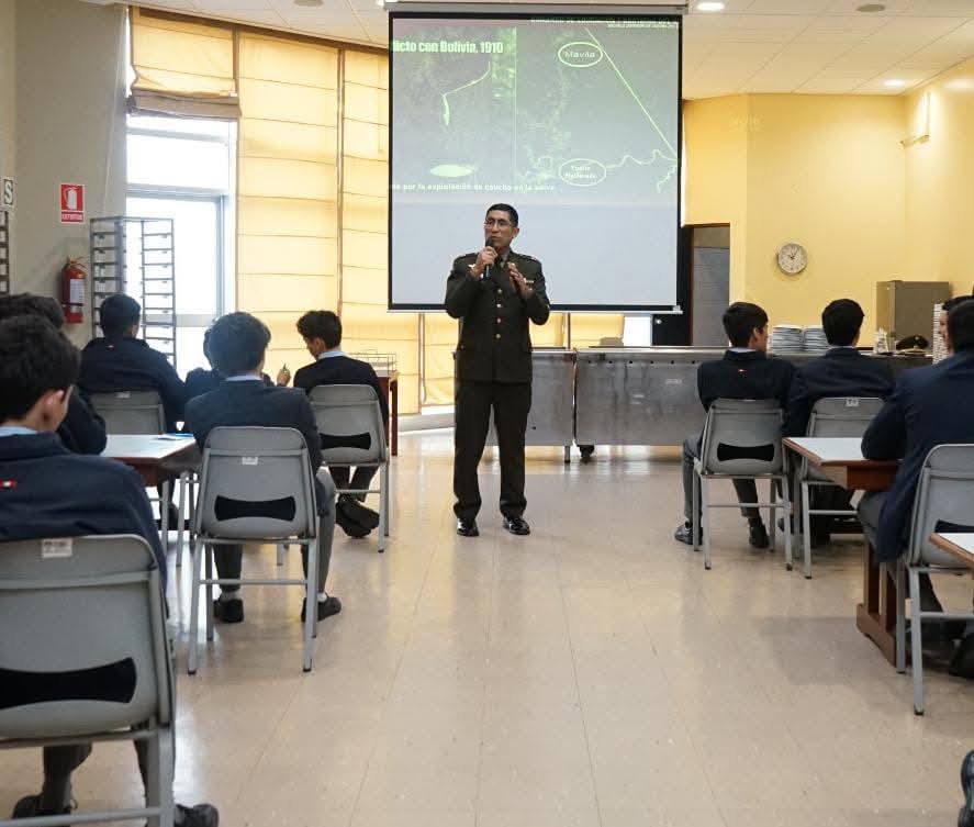 Con la finalidad de despertar en los jóvenes un mayor sentido patriótico y de responsabilidad ciudadana, la Escuela Superior de Guerra del Ejército, mediante la Escuela de Inteligencia, desarrolló la ponencia «Identidad Nacional y la Función del Ejército en el Desarrollo, la Gestión de Riesgos y Desastres, y la Política Exterior». La actividad permitió que los estudiantes del Colegio Nuestra Señora de Guadalupe comprendieran de manera más cercana el papel fundamental que cumplen las Fuerzas Armadas en el progreso y la seguridad del país.