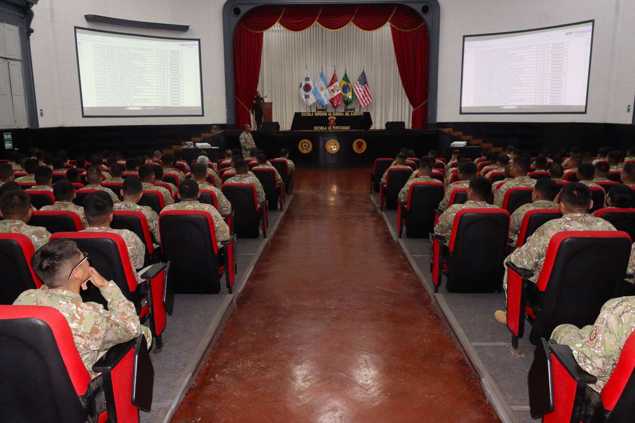 En el auditorio de la Escuela Superior de Guerra del Ejército – Escuela de Posgrado, la Escuela de Educación Física Militar y Deportes del Ejército presentó los resultados del examen físico correspondiente al proceso de incorporación de los oficiales estudiantes del grado de Teniente de los Programas Básicos de las Escuelas de Armas y Servicios del Comando de Educación y Doctrina del Ejército (COEDE).