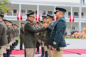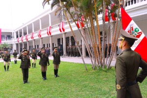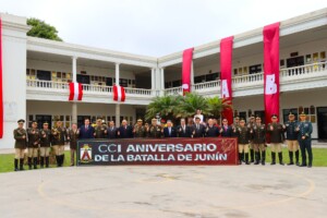 En el Patio de Honor de la Escuela Superior de Guerra del Ejército – Escuela de Posgrado (ESGE -EPG) se llevó a cabo una impecable ceremonia conmemorativa por el 201º aniversario de la heroica Batalla de Junín y Día del Arma de Caballería, este acto fue presidido por el señor Comandante General del Comando de Salud del Ejército, en su condición de Oficial más antiguo del Arma de Caballería.