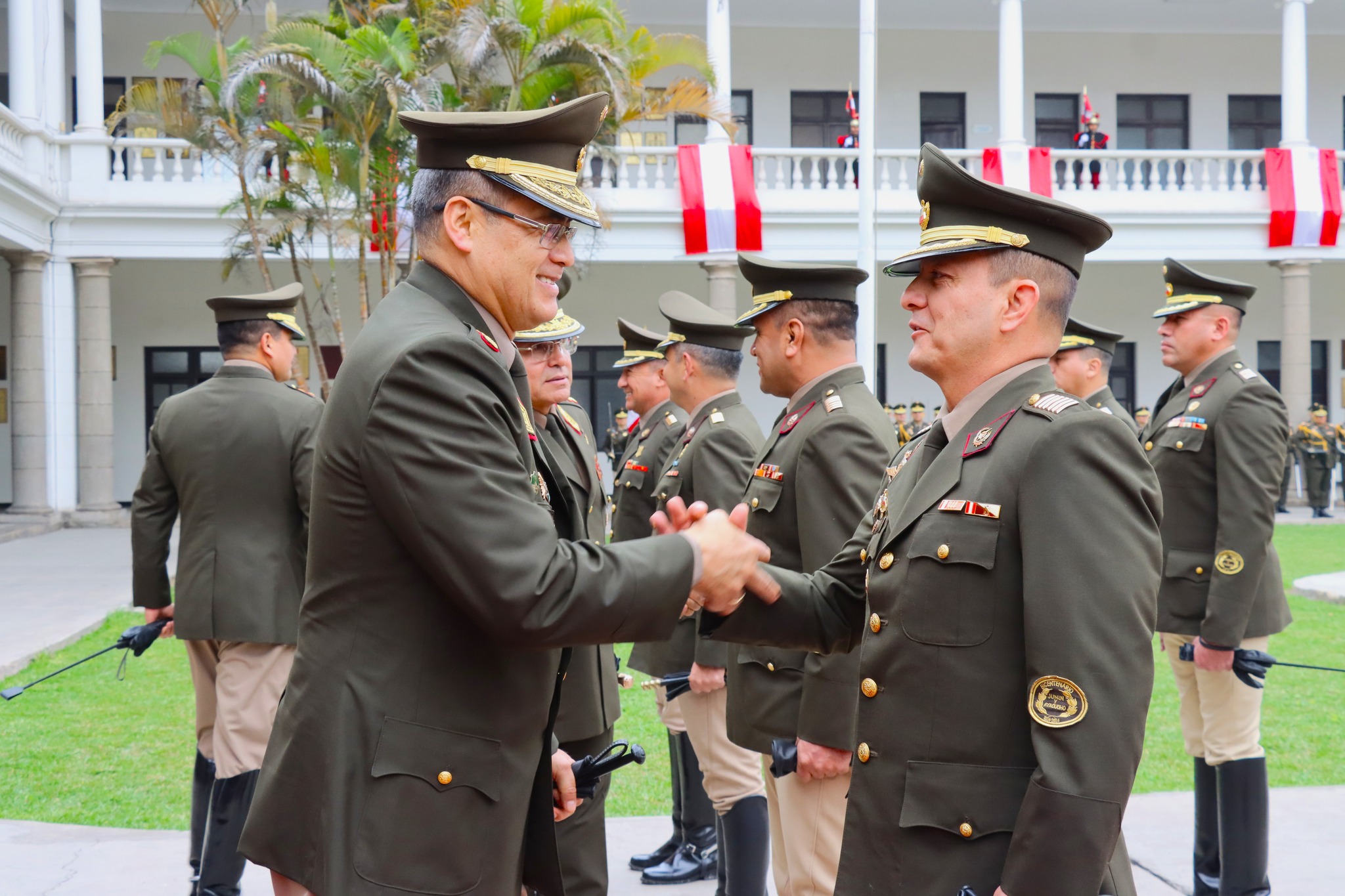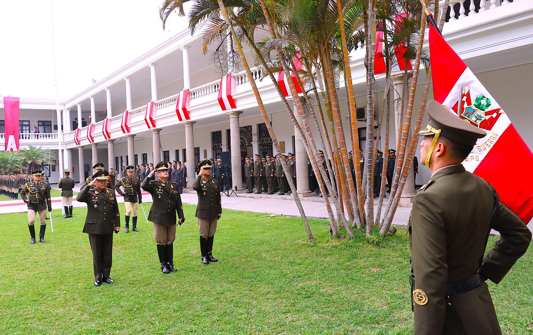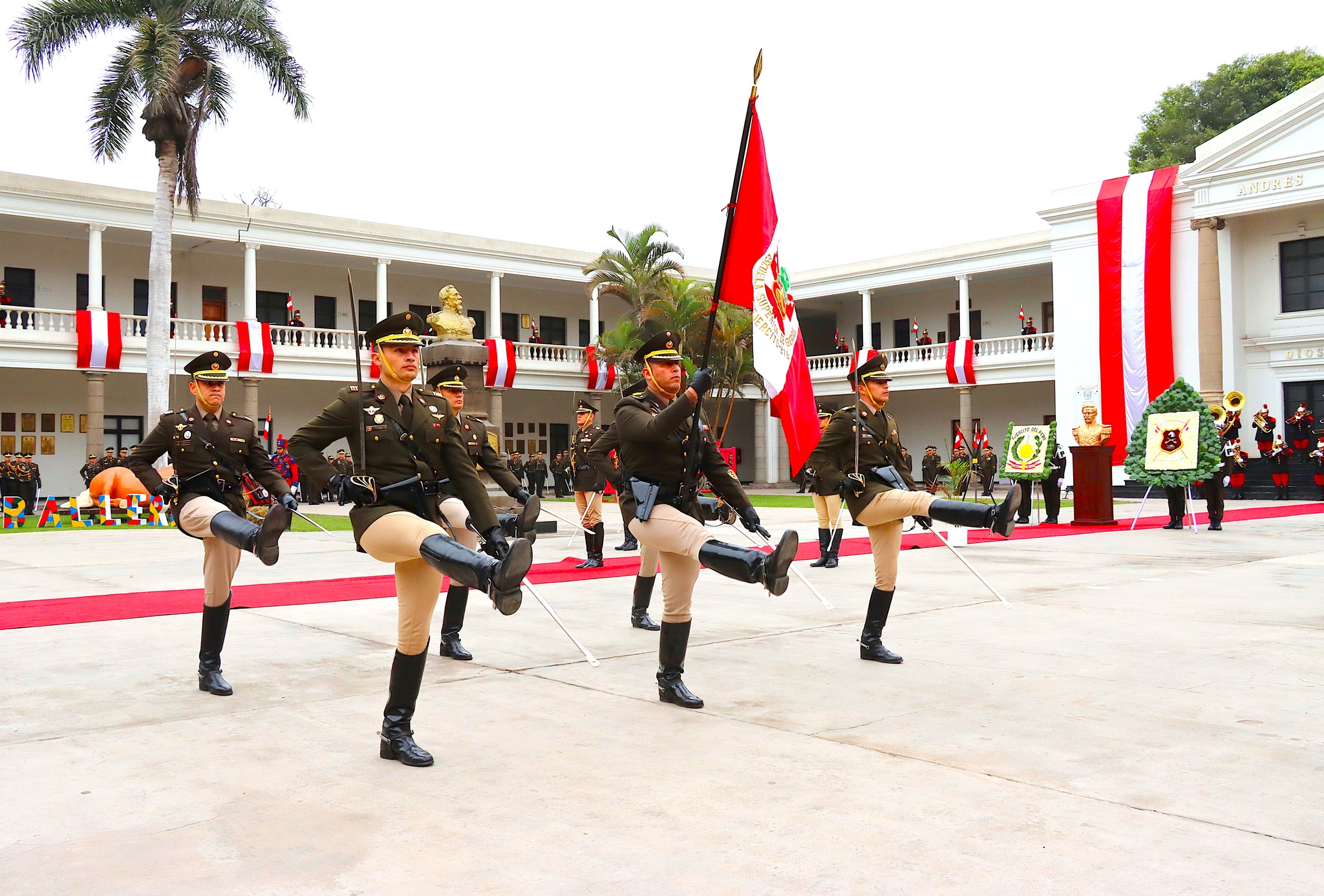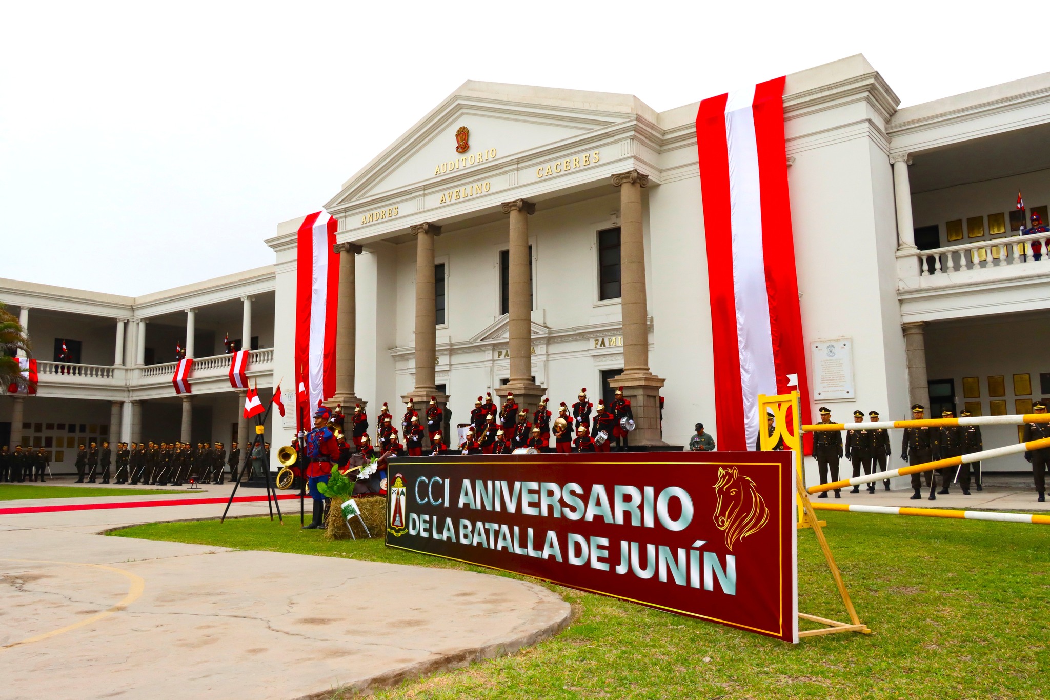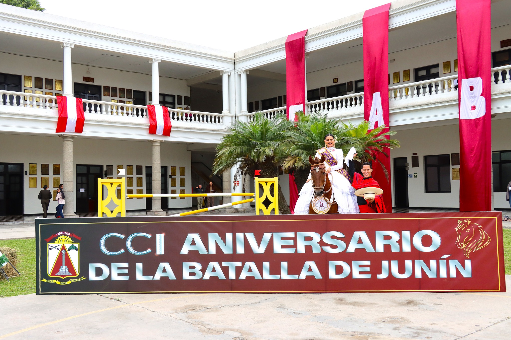 En el Patio de Honor de la Escuela Superior de Guerra del Ejército – Escuela de Posgrado (ESGE -EPG) se llevó a cabo una impecable ceremonia conmemorativa por el 201º aniversario de la heroica Batalla de Junín y Día del Arma de Caballería, este acto fue presidido por el señor Comandante General del Comando de Salud del Ejército, en su condición de Oficial más antiguo del Arma de Caballería.