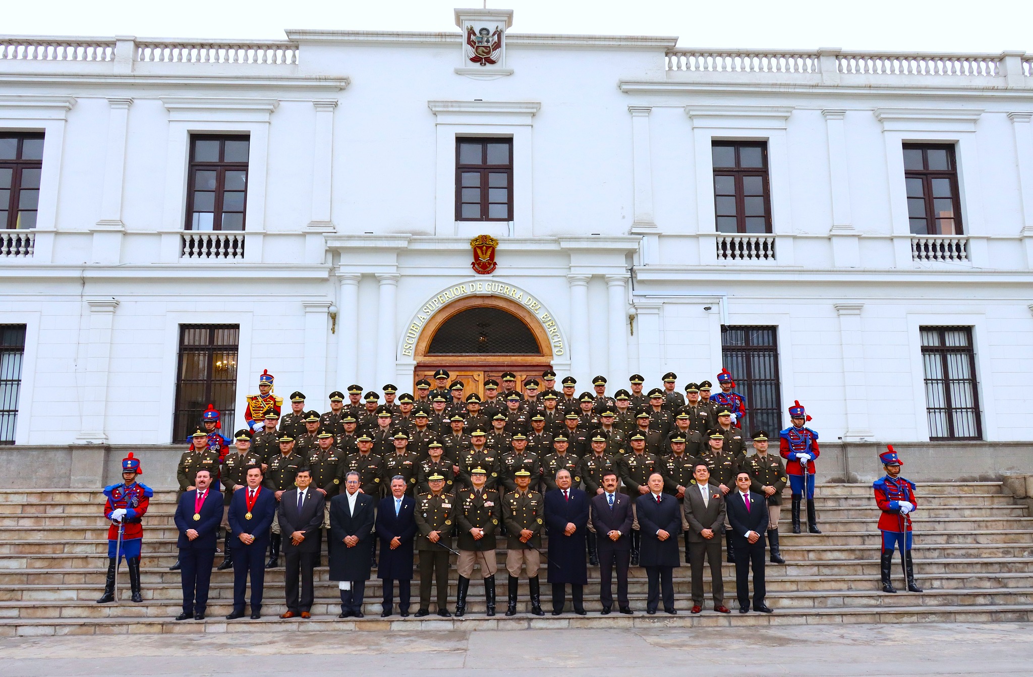 Esta significativa ceremonia reunió a ex jefes del Comando Conjunto de las Fuerzas Armadas, ex comandantes generales del Ejército, ex directores de la ESGE – EPG, oficiales generales en actividad y en retiro, oficiales superiores y subalternos, oficiales estudiantes de la ESGE – EPG, técnicos y suboficiales, quienes rindieron un justo homenaje a aquellos valientes jinetes que, el 6 de agosto de 1824, en las pampas de Chacamarca, ofrendaron su vida con sable en mano, sangre y coraje, forjando el camino hacia la libertad del Perú y de América.