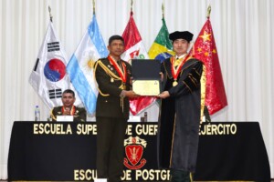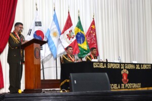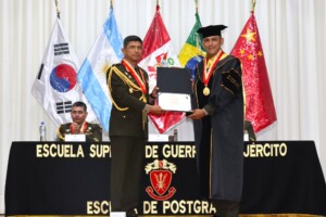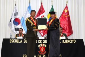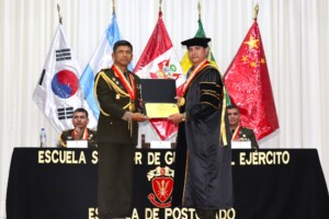 En una ceremonia marcada por el patriotismo y el reconocimiento a la excelencia académica, la Escuela Superior de Guerra del Ejército – Escuela de Posgrado llevó a cabo la solemne ceremonia de colación de los oficiales que culminaron con éxito sus programas académicos de Maestría en Estrategia y Geopolítica y Maestría en Ciencias Militares con mención en Gestión Pública y Planeamiento Estratégico.
