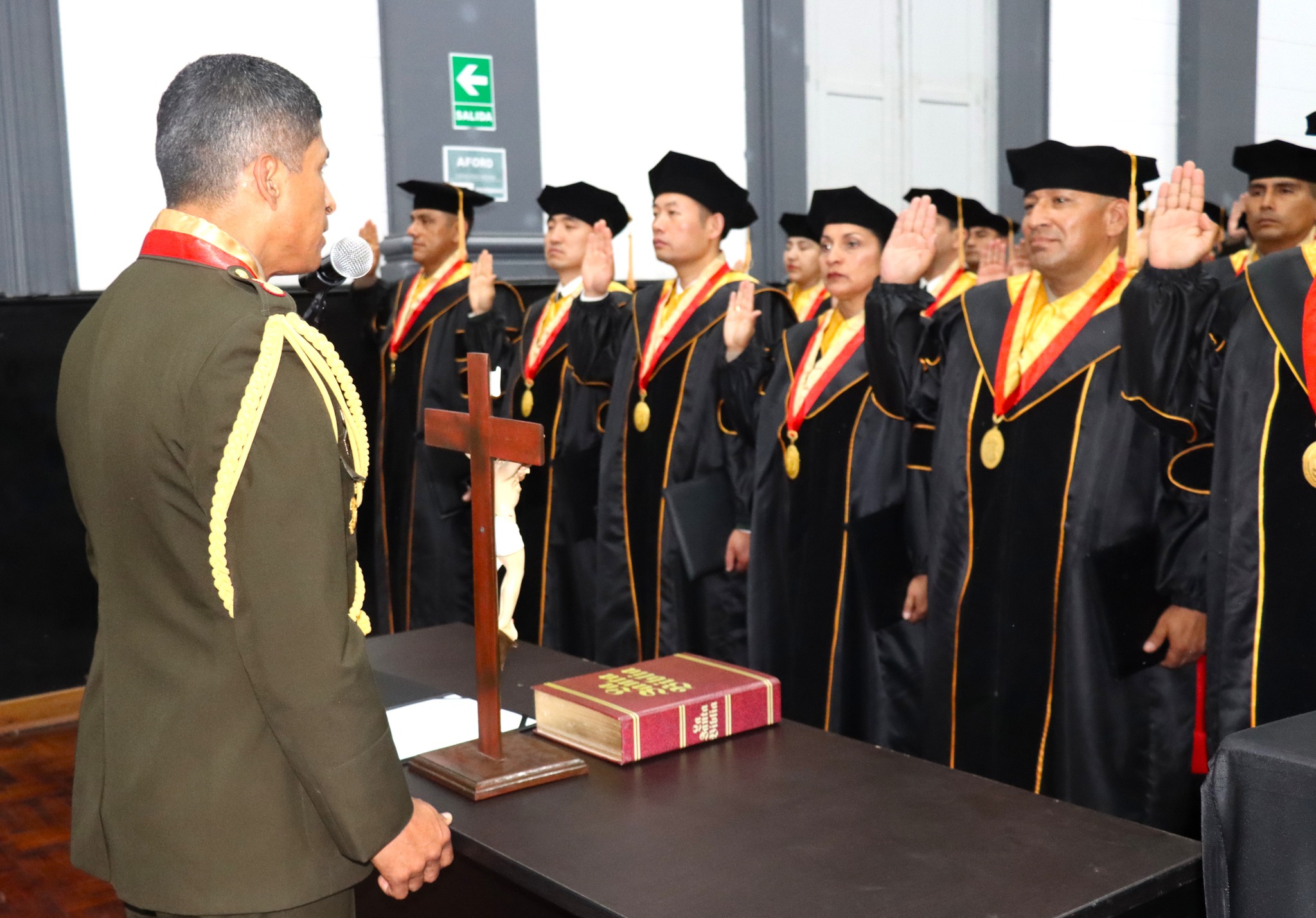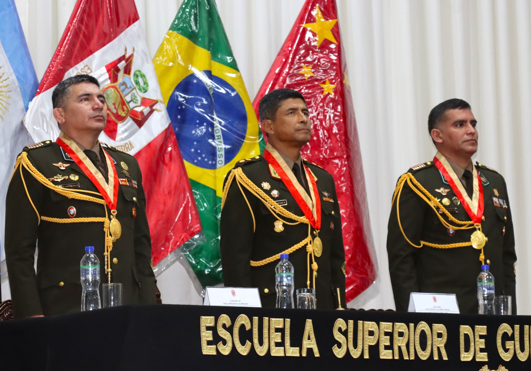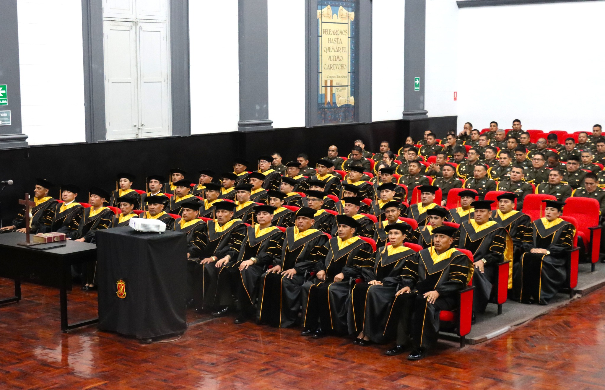 En una ceremonia marcada por el patriotismo y el reconocimiento a la excelencia académica, la Escuela Superior de Guerra del Ejército – Escuela de Posgrado llevó a cabo la solemne ceremonia de colación de los oficiales que culminaron con éxito sus programas académicos de Maestría en Estrategia y Geopolítica y Maestría en Ciencias Militares con mención en Gestión Pública y Planeamiento Estratégico.