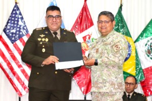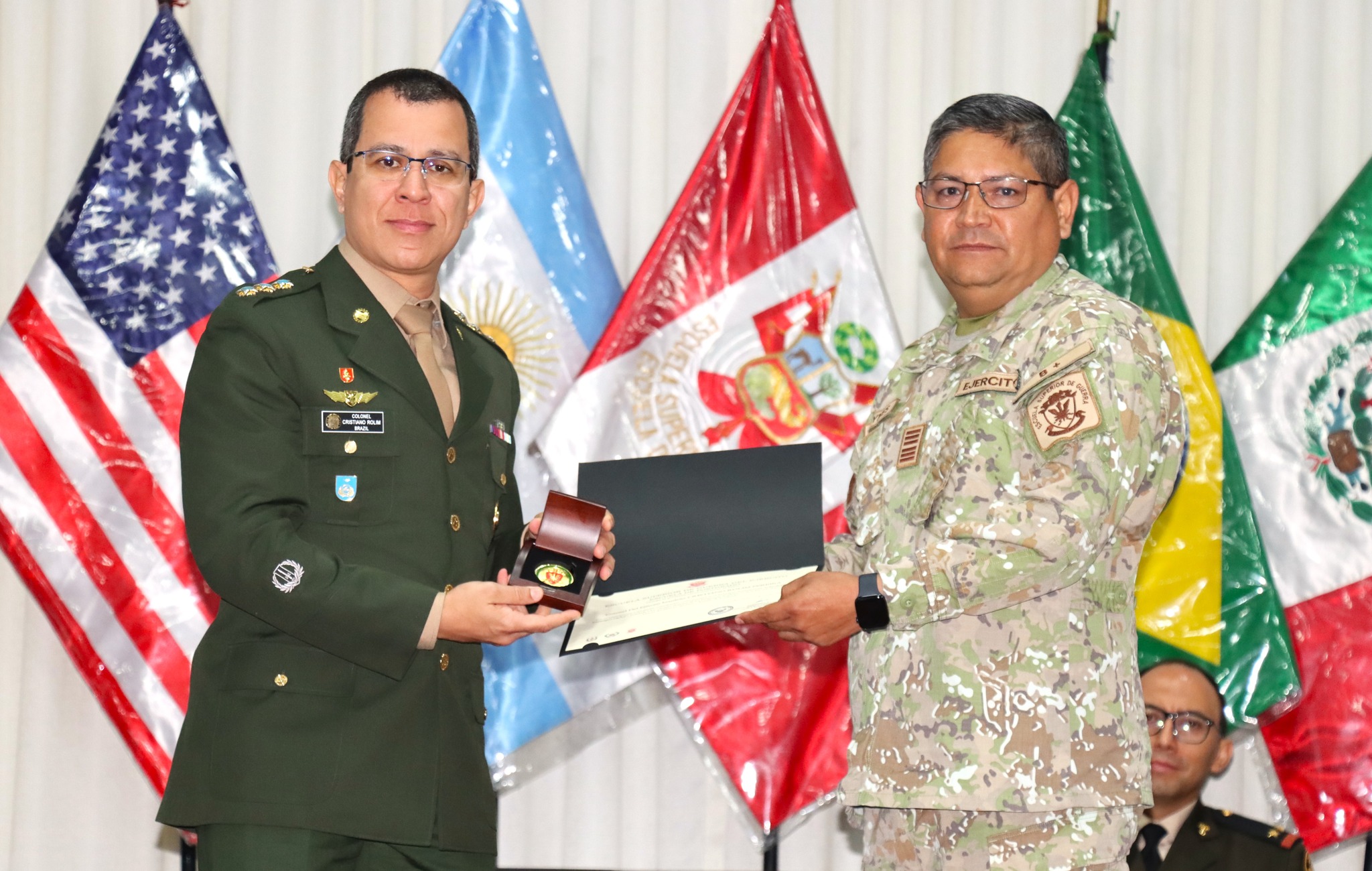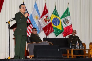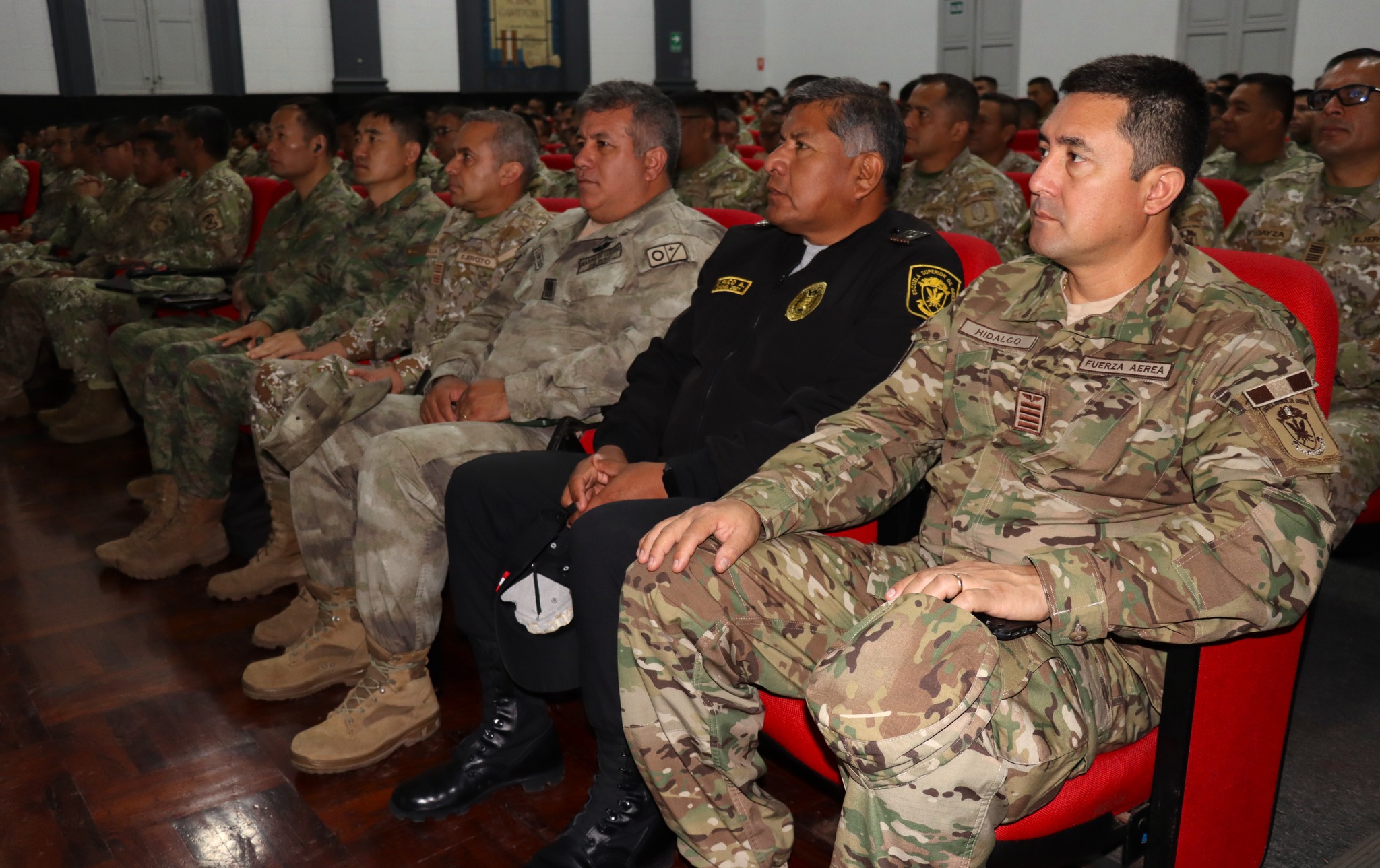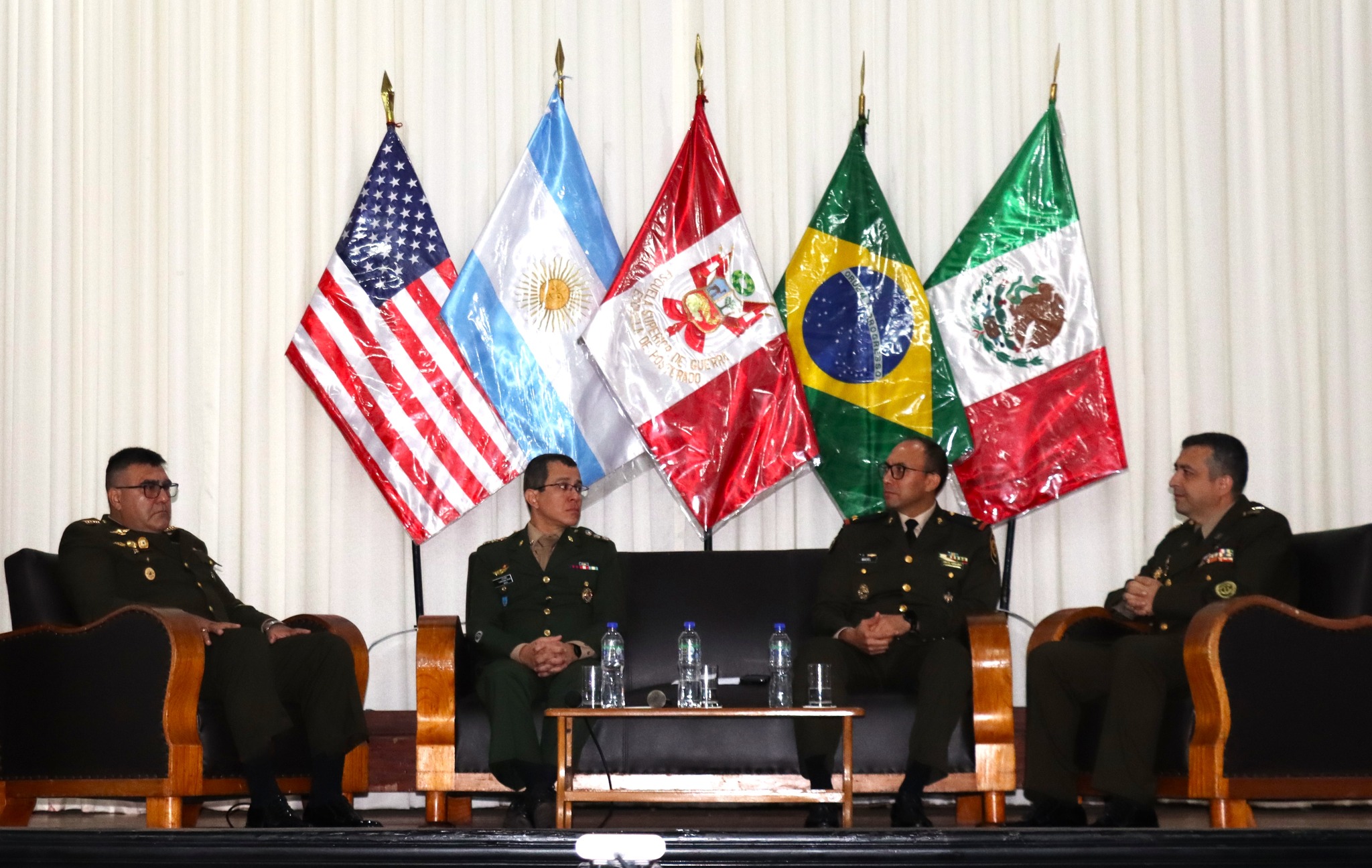 Esta trascendental actividad académica contó con la participación del coronel del Ejército Brasileño Cristiano Rolim Pereira, coronel del Ejército del Perú Octavio Freitas Farfán, coronel del Ejército Mexicano Javier Hernández Maciel; a su vez, el coronel del Ejército del Perú Edgar Concha Loayza se desempeñó como moderador.