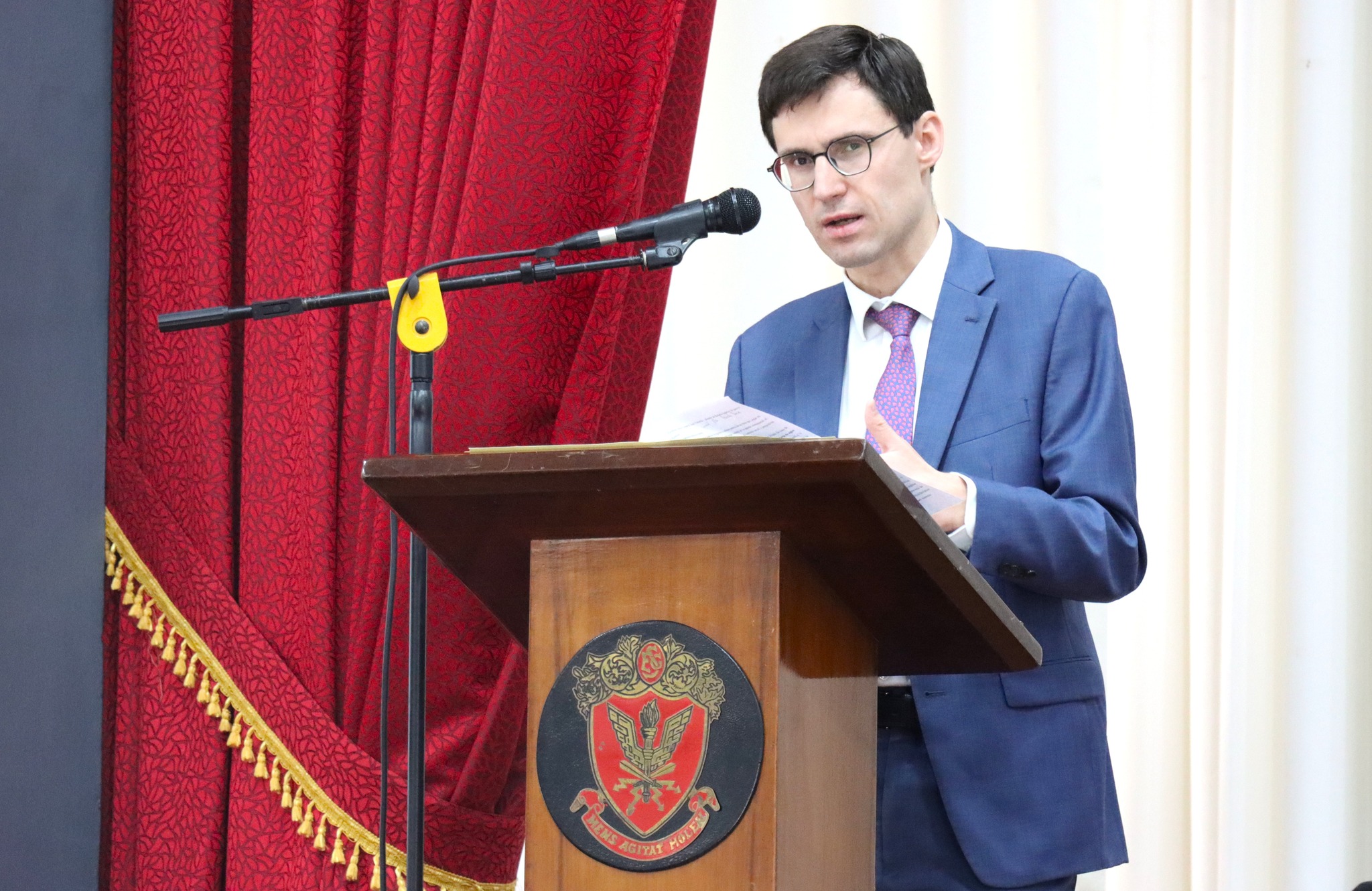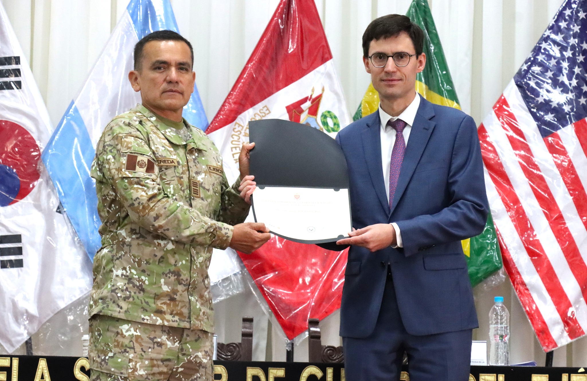 La Escuela Superior de Guerra del Ejército – Escuela de Posgrado (ESGE – EPG) desarrolló la conferencia titulada “Rusia en condiciones de turbulencia geopolítica”, a cargo del señor Artem Iovenko, Ministro Consejero de la Embajada de Rusia en la República del Perú; esta actividad académica estuvo dirigida a nuestros estudiantes regulares y egresados de esta prestigiosa casa de estudios.