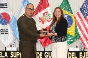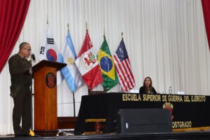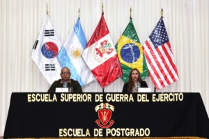 Los oficiales estudiantes de los diferentes programas académicos de la Escuela Superior de Guerra del Ejército – Escuela de Posgrado (ESGE – EPG) participaron en la conferencia titulada “Ley de Amnistía para FF.AA., PNP y Comités de Autodefensa en la Lucha contra el Terrorismo (1980 – 2000)”, la cual estuvo a cargo de una distinguida funcionaria del Congreso de la República.