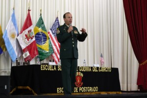 Durante el evento, se abordaron temas de valor estratégico relacionados con las nuevas dinámicas del conflicto armado no convencional, así como los retos que enfrentan las fuerzas militares y de seguridad en contextos de guerra híbrida.