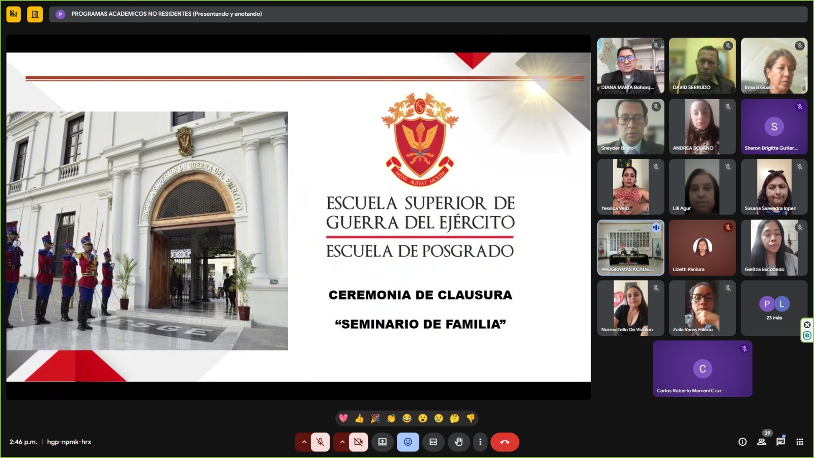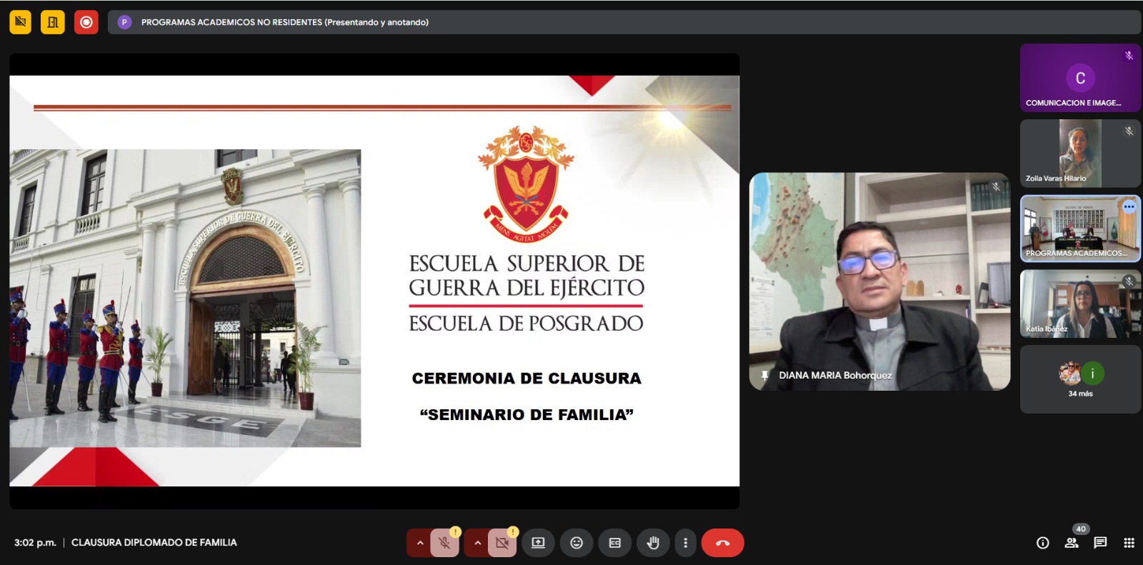 La Escuela Superior de Guerra del Ejército – Escuela de Posgrado (ESGE–EPG) clausuró el “Seminario de Familia”, actividad académica desarrollada en coordinación con el Obispado Castrense de Colombia, y la valiosa participación de esposas de los futuros comandantes de unidad.