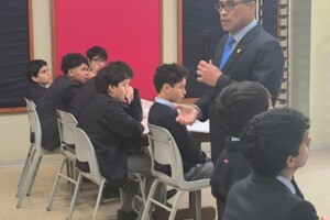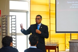 La Escuela Superior de Guerra del Ejército -EPG, a través de la Escuela Jurídica, brindó la conferencia titulada “Identidad Nacional y el Rol del Ejército en el Desarrollo Nacional, Gestión de Riesgos y Desastres, y Política Exterior” al Colegio Alpamayo. La actividad tuvo como finalidad fortalecer la formación cívica de los estudiantes, acercándolos al conocimiento del papel fundamental que cumplen las Fuerzas Armadas en la vida nacional.
