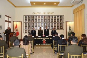 Con una solemne ceremonia de izamiento del Pabellón Nacional, la Escuela Superior de Guerra del Ejército – Escuela de Posgrado (ESGE – EPG) dio inicio al proceso de evaluación externa conducido por la empresa acreditadora designada por el SINEACE, con el objetivo de obtener la acreditación de la Maestría en Ciencias Militares.