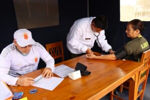 Esta primera parte comprendió ejercicios tales como barras, suspensión, planchas, abdominales y carrera; asimismo, como parte del protocolo para garantizar el buen estado de salud de los oficiales del grado de Mayor se dictó las medidas de seguridad a cargo del personal de Seguridad y Salud en el Trabajo, así como la evaluación de la presión arterial de cada uno de los postulantes.