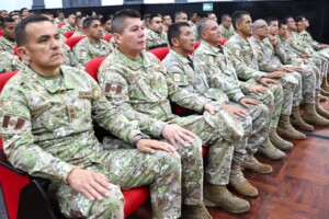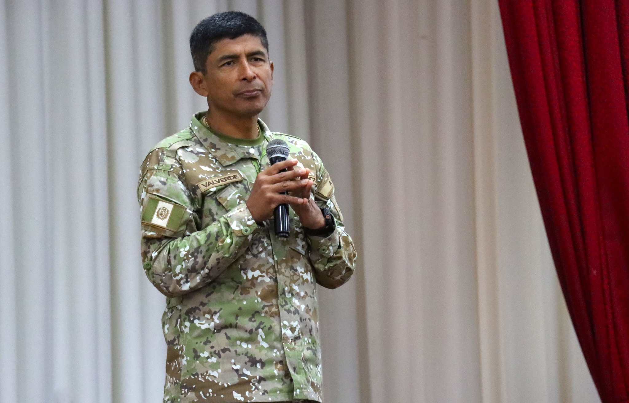 Durante la ceremonia, el señor General de Brigada Juan Valverde Virhuez, Director de la ESGE – EPG, dirigió un mensaje alusivo a las próximas fiestas navideñas, reconociendo el esfuerzo, la disciplina y la dedicación demostrados por los oficiales estudiantes a lo largo del Año Fiscal 2025.