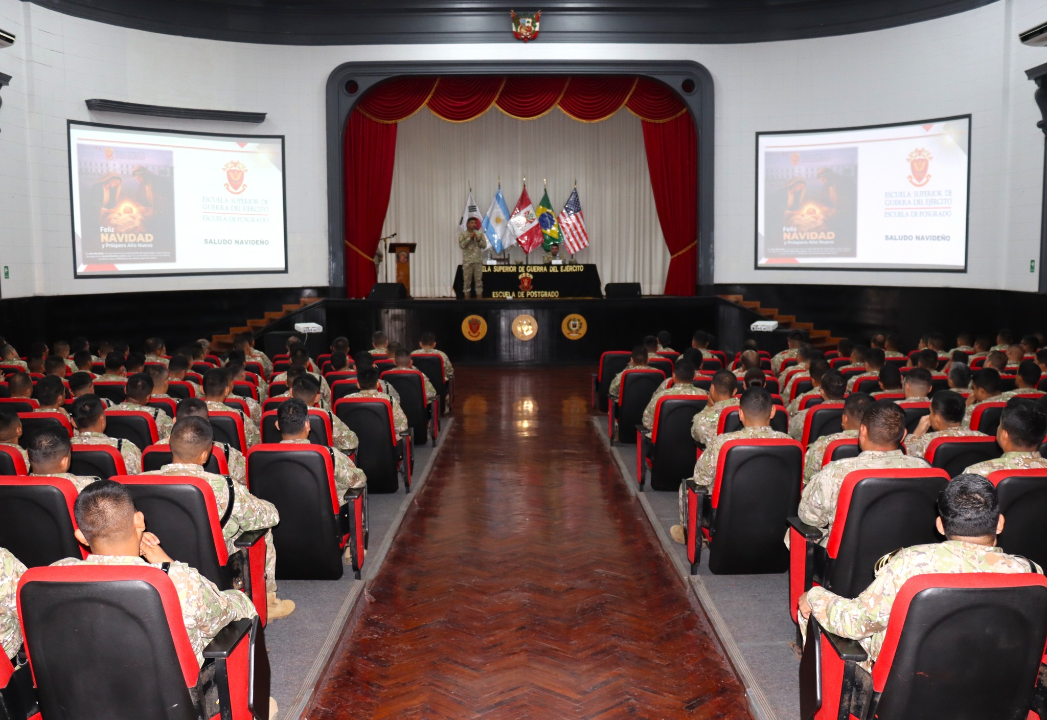 En el marco de las celebraciones por las fiestas de Navidad, la Escuela Superior de Guerra del Ejército – Escuela de Posgrado realizó el tradicional Saludo Navideño, dirigido a los oficiales estudiantes de esta casa de estudios.