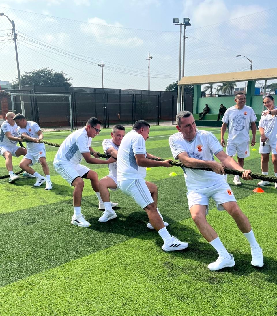 La actividad incluyó dinámicas de integración, juegos recreativos y competencias deportivas, fomentando un ambiente de compañerismo y fortaleciendo los lazos entre los oficiales alumnos.