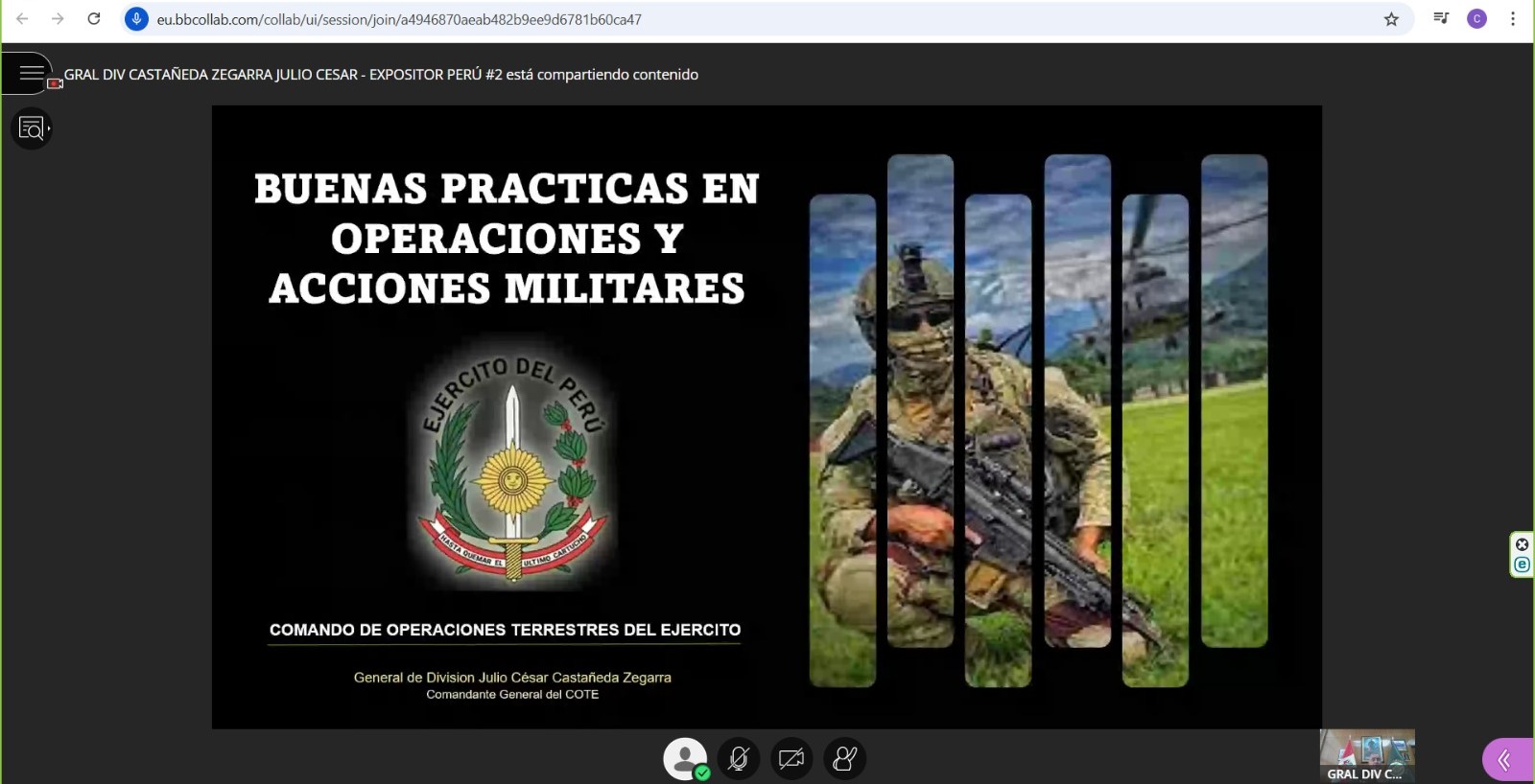 La Planta Orgánica y oficiales estudiantes de la Escuela Superior de Guerra del Ejército – Escuela de Posgrado (ESGE – EPG) participaron en el seminario internacional virtual, titulado “Buenas prácticas del Derecho Operacional”; actividad académica que fue desarrollada por esta prestigiosa casa de estudios en coordinación con la Universidad Nebrija del Reino de España.