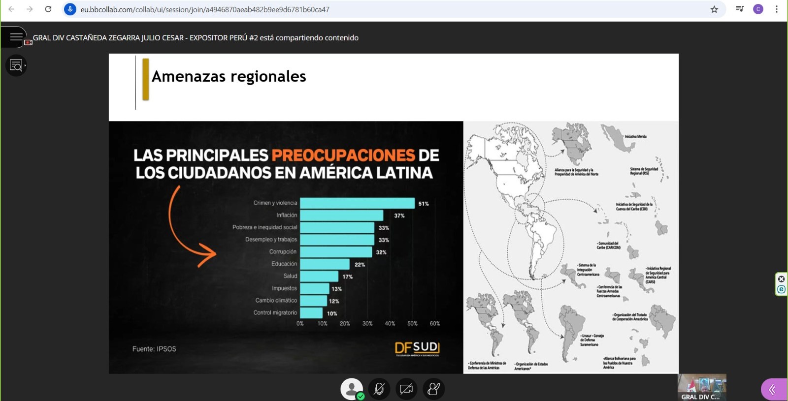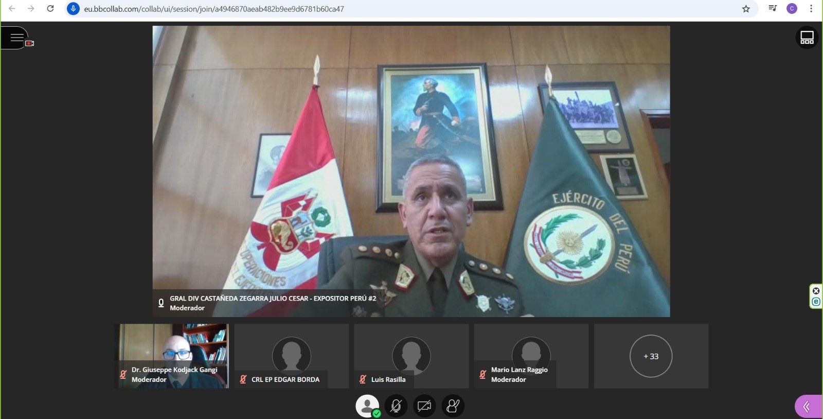 Esta actividad académica contó con la participación del señor General de División Julio César Castañeda Zegarra, Comandante General del Comando de Operaciones Terrestres del Ejército, Dr. Mario Lanz Raggio, Vicesecretario General Técnico del Ministerio de Defensa de España.