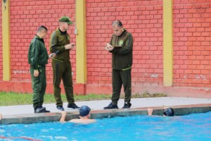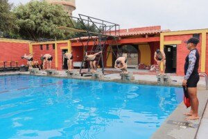 Los oficiales alumnos del grado de Teniente Coronel que cursan el XI Diplomado de Liderazgo y Planeamiento Estratégico (DLIPE) en la Escuela Superior de Guerra del Ejército – Escuela de Posgrado culminaron su Test de Capacidad Física con la prueba de natación.