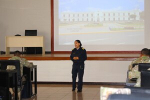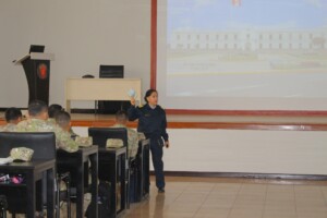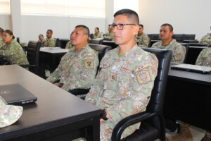 Los oficiales estudiantes del Diplomado en Técnica de Estado Mayor Administrativo (DTEMA) de la ESGE–EPG, recibieron la conferencia titulada “Derecho Internacional de los Derechos Humanos y Derecho Internacional Humanitario aplicados a las Fuerzas Armadas”, a cargo de la Cmdte. FAP Roslem Cáceres López.