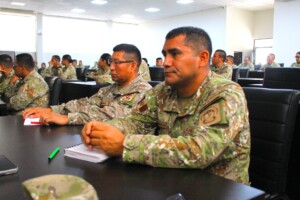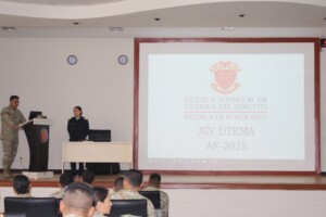 La destacada oficial del Cuerpo Jurídico de la Fuerza Aérea del Perú, Doctora en Derecho y Magíster en Gestión de Políticas Públicas, compartió su amplia experiencia académica y profesional, brindando una exposición orientada a fortalecer la formación ética, legal y humanitaria de los futuros asesores militares.