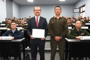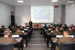 Los coroneles del Programa de Alto Mando del Ejército (PAME) participaron en la conferencia magistral titulada «Las Fuerzas Armadas en el Entorno Geopolítico del Siglo XXI», la misma que estuvo a cargo del señor Gral Div (R) Otto Guibovich Arteaga, Excomandante General del Ejército.