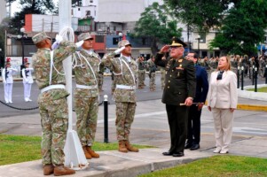 Esta mañana se llevó a cabo la ceremonia de izamiento del Pabellón Nacional en el frontis de la Escuela Superior de Guerra del Ejército – Escuela de Post Grado, como parte del inicio de las actividades conmemorativas del bicentenario de las batallas de Junín y Ayacucho.