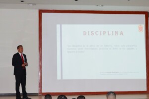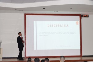 En la Escuela Superior de Guerra del Ejército – Escuela de Posgrado, como parte de la formación integral de nuestros oficiales estudiantes, que abarca aspectos académicos, físicos y deontológicos, el día de hoy, un integrante del Programa de Alto Mando del Ejército (PAME) brindó una charla sobre el valor de la Disciplina, dirigida a los oficiales del LXIX Programa de Comando y Estado Mayor (PCEM).