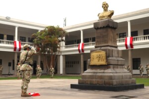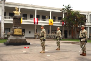 En el Patio de Honor de la Escuela Superior de Guerra del Ejército – Escuela de Posgrado, en el marco de la ceremonia de izamiento de nuestro sagrado Pabellón Nacional, y ante el busto del Coronel Francisco Bolognesi Cervantes, rendimos homenaje al Servicio de Ciencia y Tecnología del Ejército (SCYTE) en su XIII Aniversario de creación.