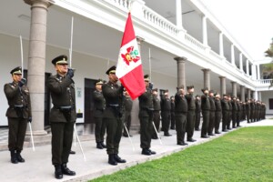 En la Escuela Superior de Guerra del Ejército – Escuela de Posgrado, se realizó la ceremonia de izamiento de nuestro sagrado Pabellón Nacional símbolo de patriotismo y amor a nuestra patria, dicho acto estuvo presidido por el Sr Gral Brig Juan VALVERDE VIRHUEZ director de la ESGE-EPG, oficiales integrantes de la planta orgánica y oficiales estudiantes de los diferentes programas académicos, cabe resaltar que dicha ceremonia se realiza para enaltecer nuestros símbolos patrios y dar cumplimiento a lo dispuesto en la Ley 32251 “Ley que unifica y armoniza la regulación de los símbolos de la patria”.