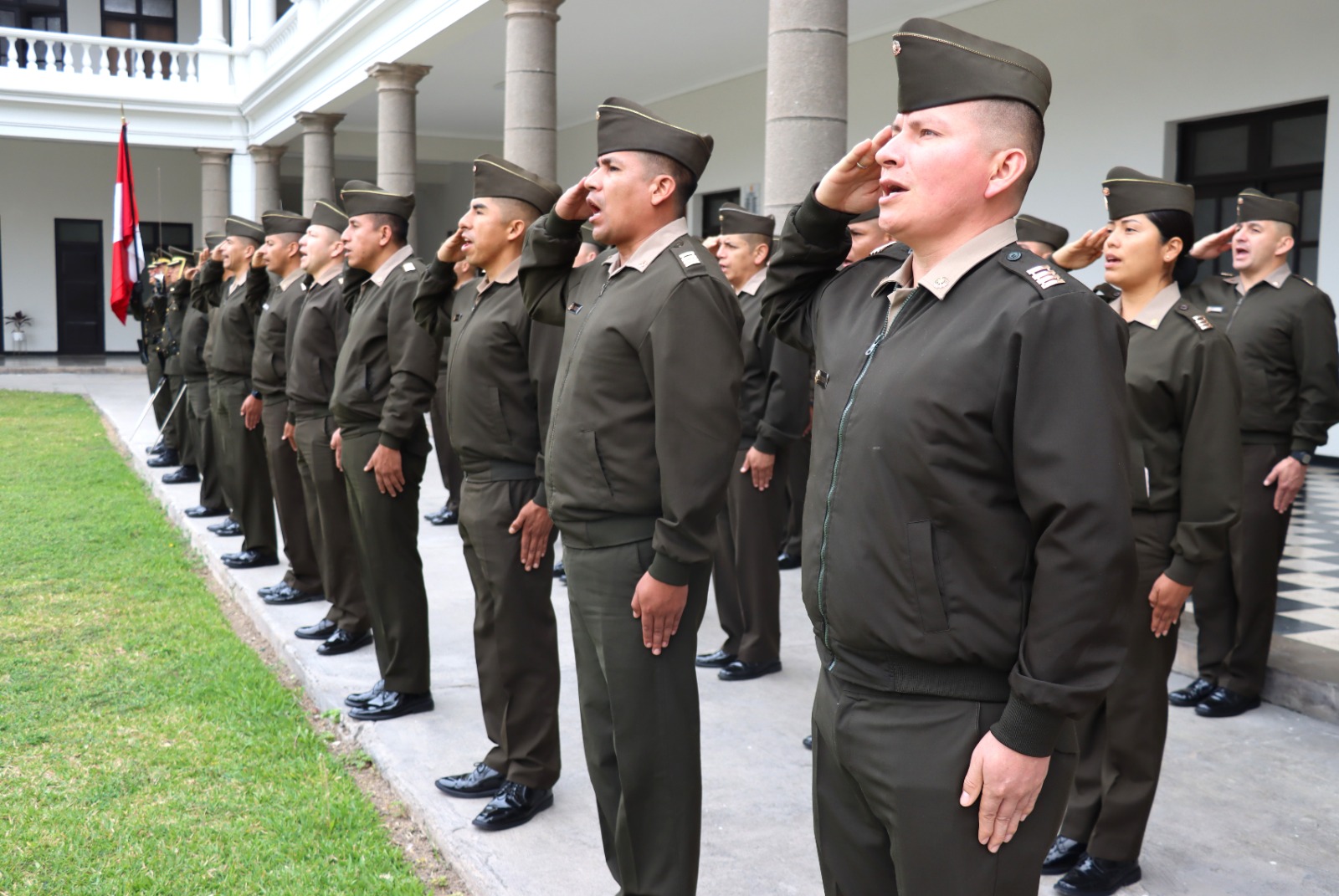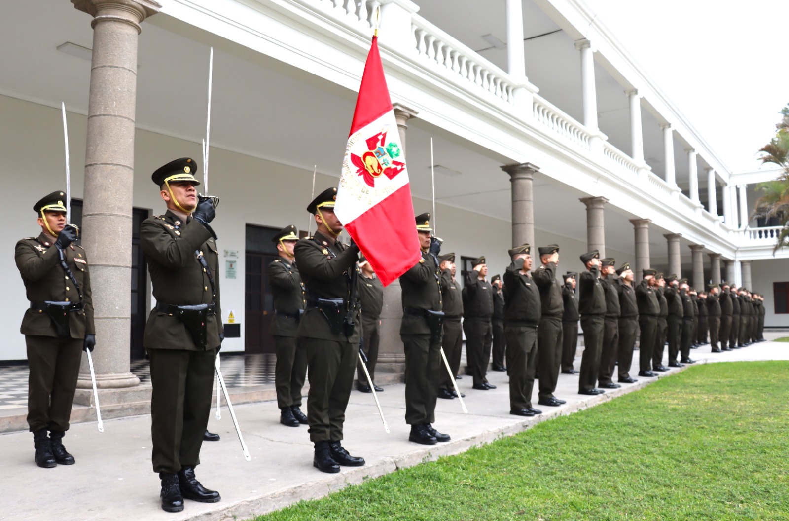 En la Escuela Superior de Guerra del Ejército – Escuela de Posgrado, se realizó la ceremonia de izamiento de nuestro sagrado Pabellón Nacional símbolo de patriotismo y amor a nuestra patria, dicho acto estuvo presidido por el Sr Gral Brig Juan VALVERDE VIRHUEZ director de la ESGE-EPG, oficiales integrantes de la planta orgánica y oficiales estudiantes de los diferentes programas académicos, cabe resaltar que dicha ceremonia se realiza para enaltecer nuestros símbolos patrios y dar cumplimiento a lo dispuesto en la Ley 32251 “Ley que unifica y armoniza la regulación de los símbolos de la patria”.
