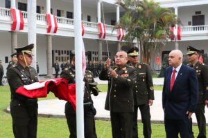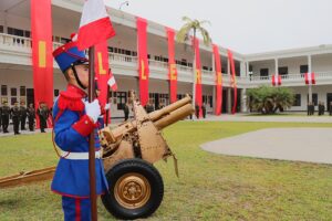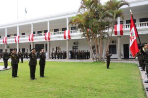 En el patio de honor de la Escuela Superior de Guerra del Ejército – Escuela de Posgrado, alma mater de los oficiales de Estado Mayor y líderes estratégicos de nuestra institución, se realizó la solemne ceremonia de izamiento del Pabellón Nacional, en conmemoración del centésimo quincuagésimo noveno Aniversario del Combate del 2 de Mayo y Día del Arma de Artillería. Esta fecha rememora uno de los episodios más gloriosos de la historia del Perú y América, donde nuestros valerosos artilleros, junto al pueblo peruano, dieron muestra de la moral nacional y del espíritu de lucha por la libertad, dejando un legado de identidad y convicción que perdura hasta nuestros días.