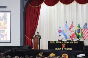El día de hoy en el auditorio de la Escuela Superior de Guerra del Ejército – Escuela de Posgrado se realizó la conferencia “Aniversario del Ejército de Brasil” celebrado este 19 de abril, el conferencista, el My EB Fernando Angello Coutinho Nevares, alumno del septuagésimo Programa de Comando y Estado Mayor de la ESGE –EPG, durante el evento mencionó que el Ejército de Brasil es un pilar fundamental en la construcción y protección de la Nación. A lo largo de su historia, sus miembros han demostrado coraje, disciplina y compromiso con los valores democráticos y la soberanía nacional.