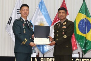El Mayor Ejército de Corea Taeung Lee, distinguido alumno del Programa de Comando y Estado Mayor de nuestra prestigiosa escuela, brindó una conferencia titulada “Corea en el mundo: Pasado, presente y futuro”, en el marco del Día de la Liberación Nacional de la República de Corea, dirigida a los oficiales estudiantes de la Escuela Superior de Guerra del Ejército – Escuela de Posgrado.