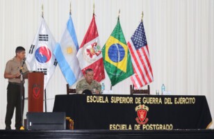 El señor General de División, Comandante General de la IV División de Ejército y Comandante del Comando Especial del VRAEM, ofreció una conferencia titulada «Situación General del VRAEM» a los oficiales alumnos de esta prestigiosa casa de estudios.